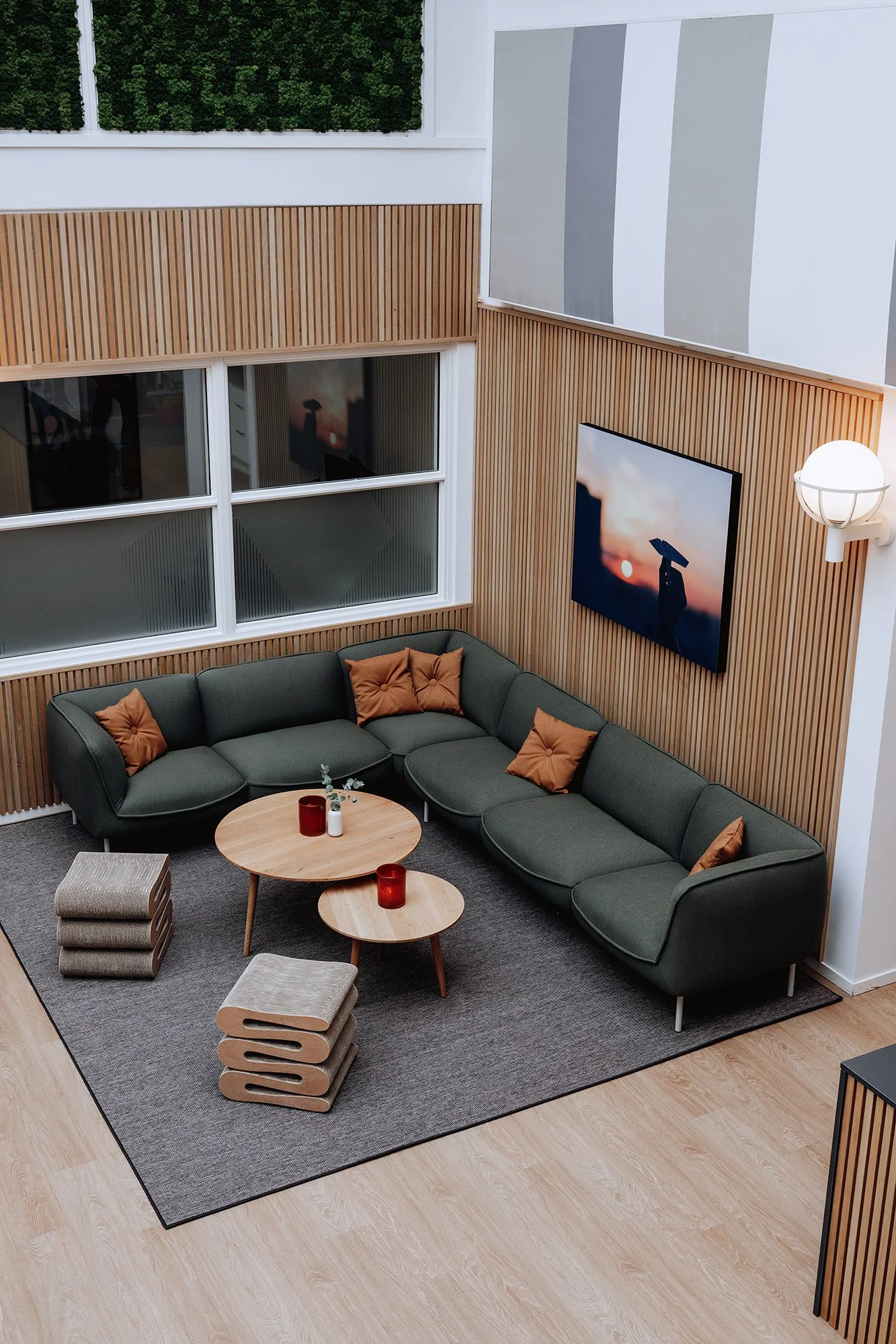 Vi fick uppdraget att utveckla miljön och valde möbler som kombinerar komfort, kvalitet och mjuka former. Inredningen utformades för att skapa rum i rummet – platser som ger stöd för både återhämtning och möten.